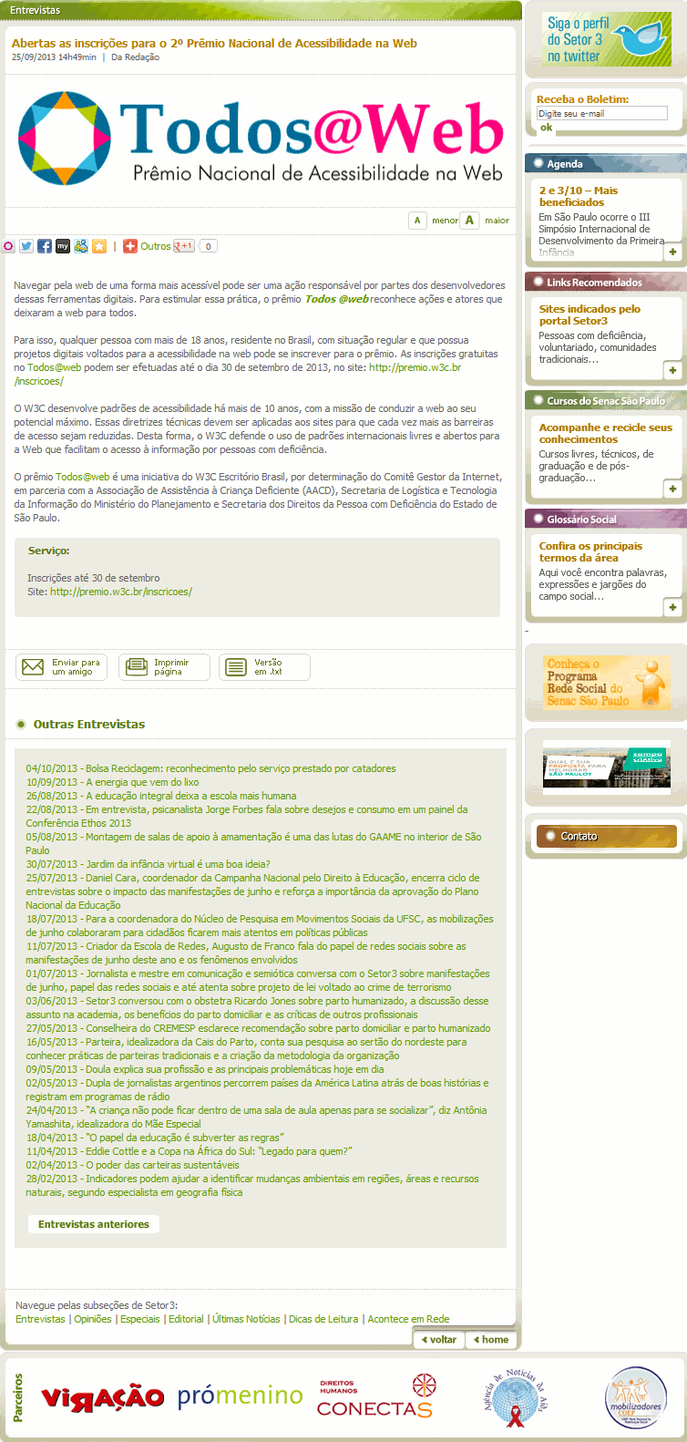 O prêmio Todos@web é uma iniciativa do W3C Escritório Brasil, por determinação do Comitê Gestor da Internet, em parceria com a Associação de Assistência à Criança Deficiente (AACD), Secretaria de Logística e Tecnologia da Informação do Ministério do Planejamento e Secretaria dos Direitos da Pessoa com Deficiência do Estado de São Paulo.