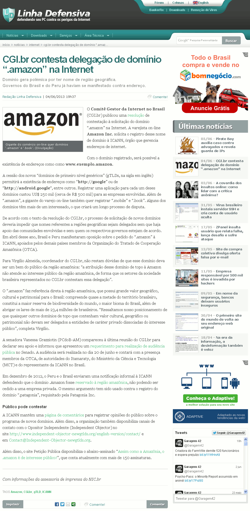 O Comitê Gestor da Internet no Brasil (CGI.br) publicou uma resolução de contestação à solicitação do domínio “.amazon” na Internet. A varejista on-line Amazon Inc. solicita o registro desse nome de domínio à ICANN, órgão que gerencia endereços de internet.